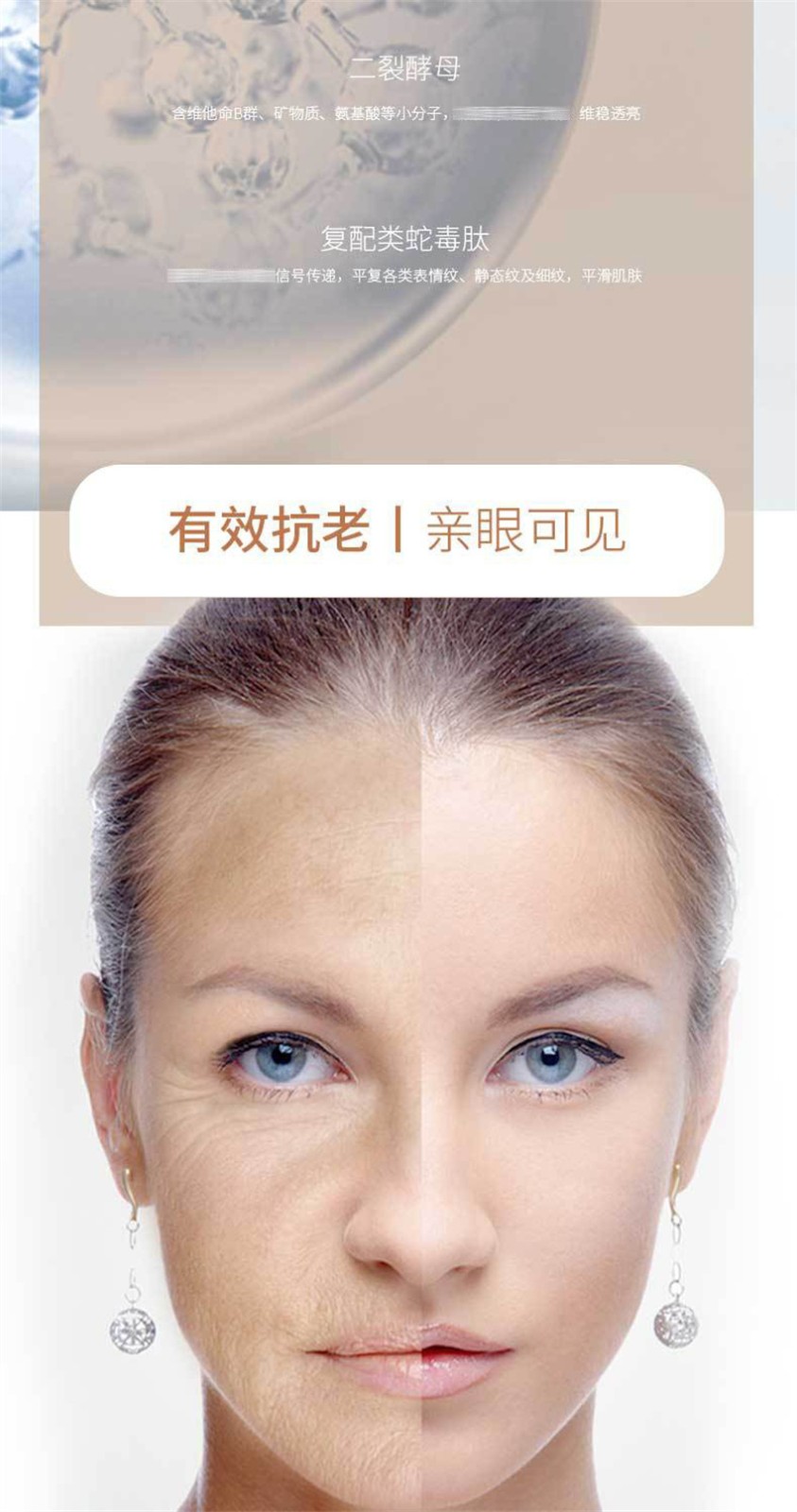 【产品功效】:提拉紧致 淡化细纹 舒缓修护 保湿润肤 提亮肤色